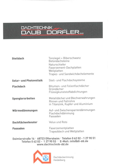 Jetzt Dachtechnik Daub Dörfler GmbH kontaktieren und Angebot einholen